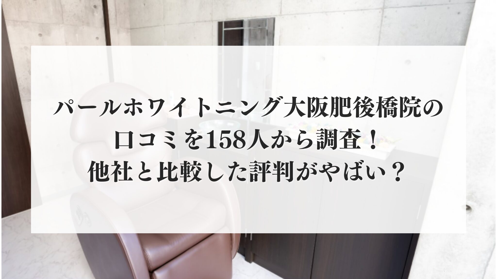 本記事ではパールホワイトニング大阪肥後橋院の口コミを158人から調査した結果についてお伝えします。