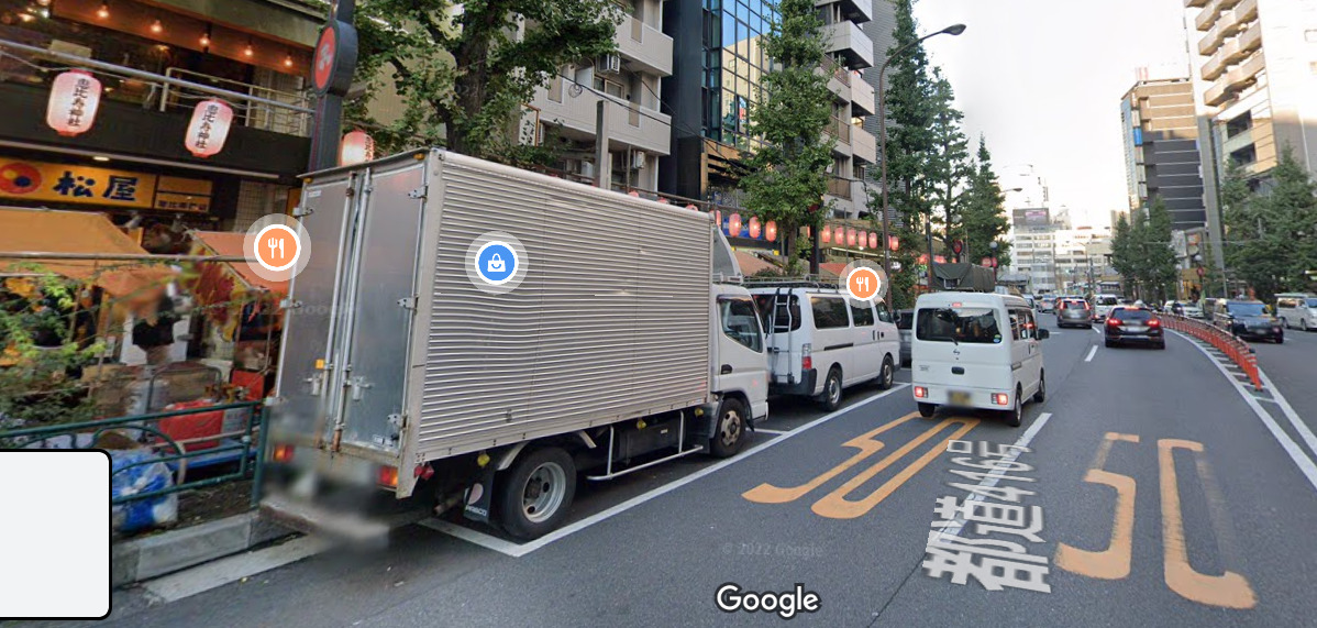 左手に松屋を見ながら直進します。