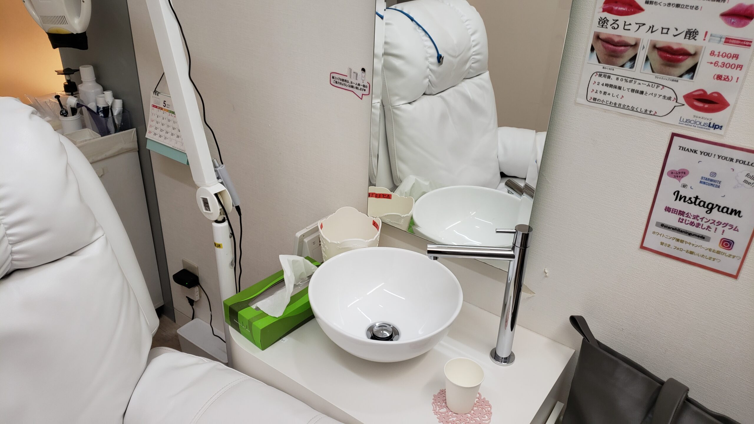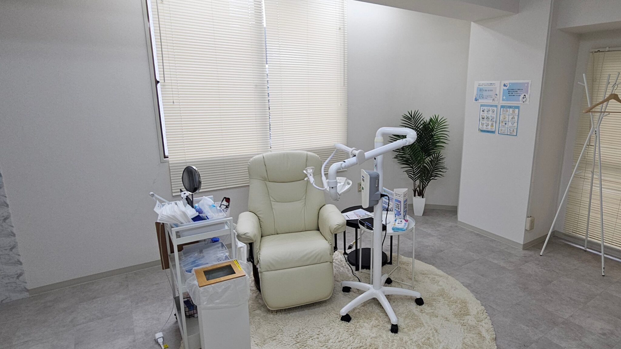私は初めての利用だったので、ここの椅子に座って簡単な問診票を書き、予約時間ちょうどに案内されました。