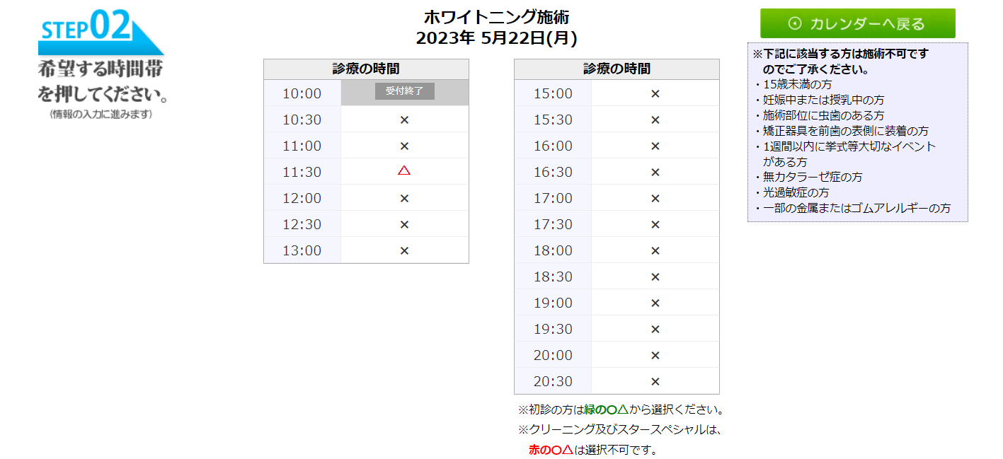 一方スターホワイトニング梅田院の予約状況はこんな感じです。