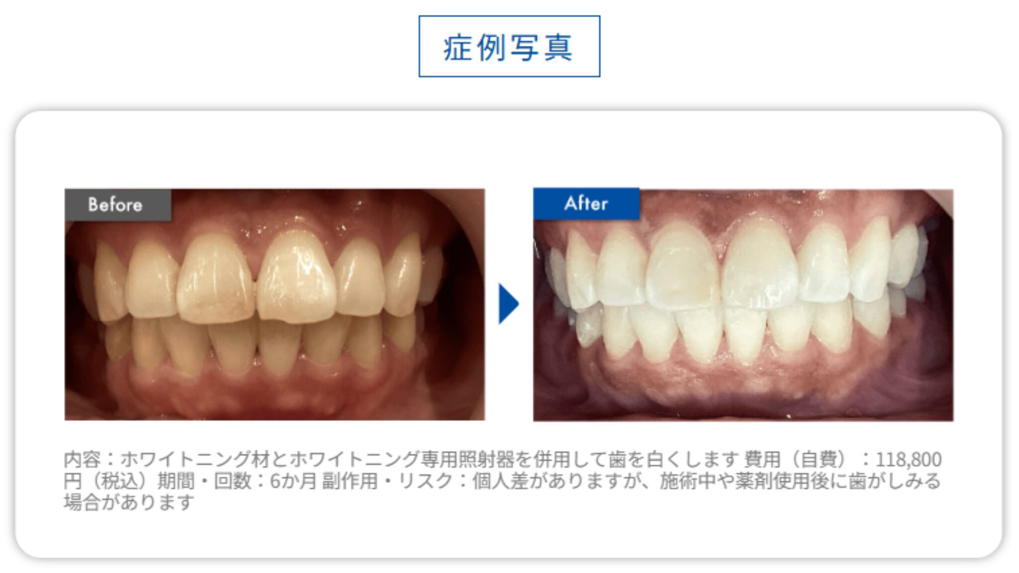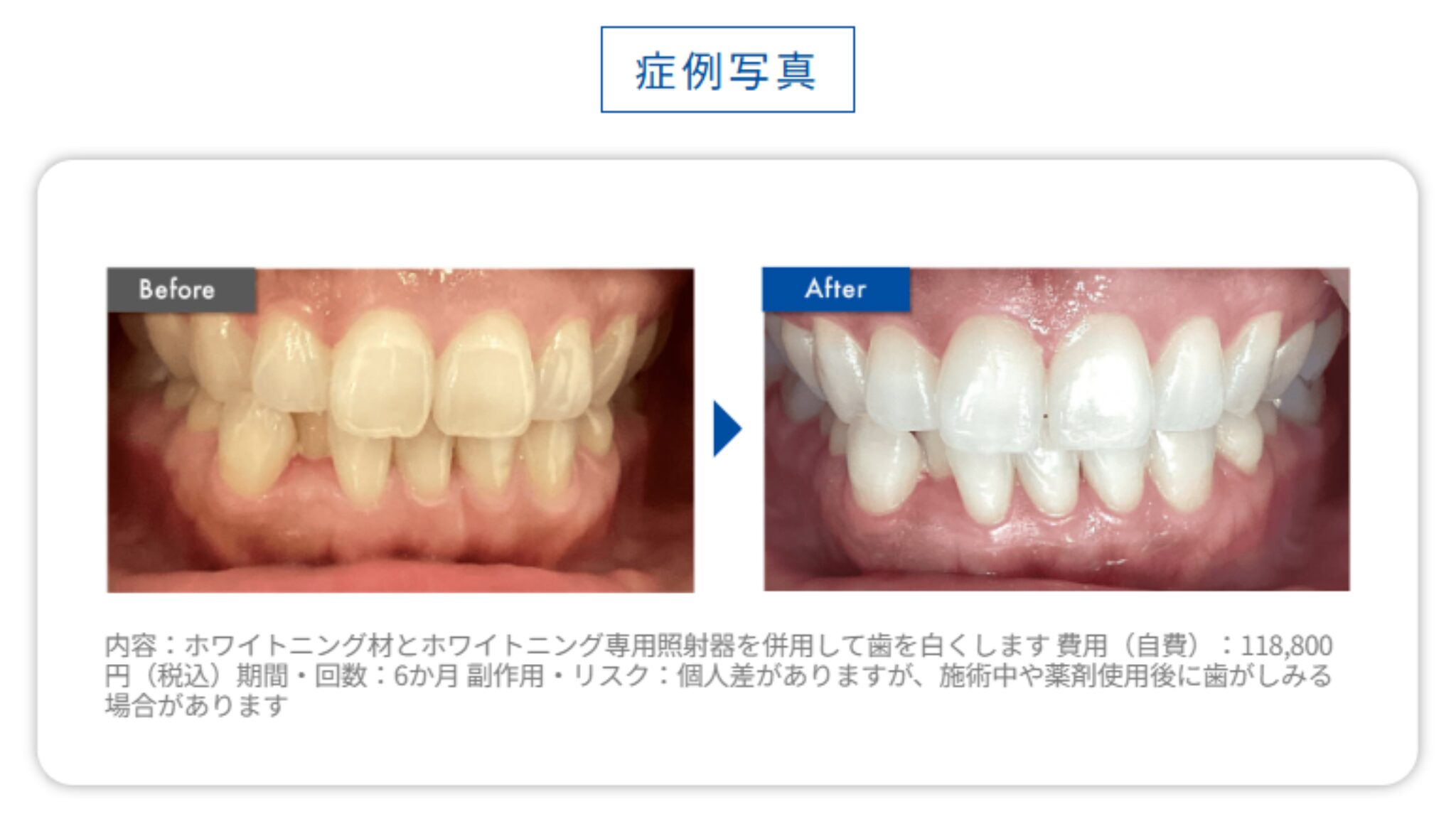 • 内容:ホワイトニング材とホワイトニング専用照射器を併用して歯を白くします