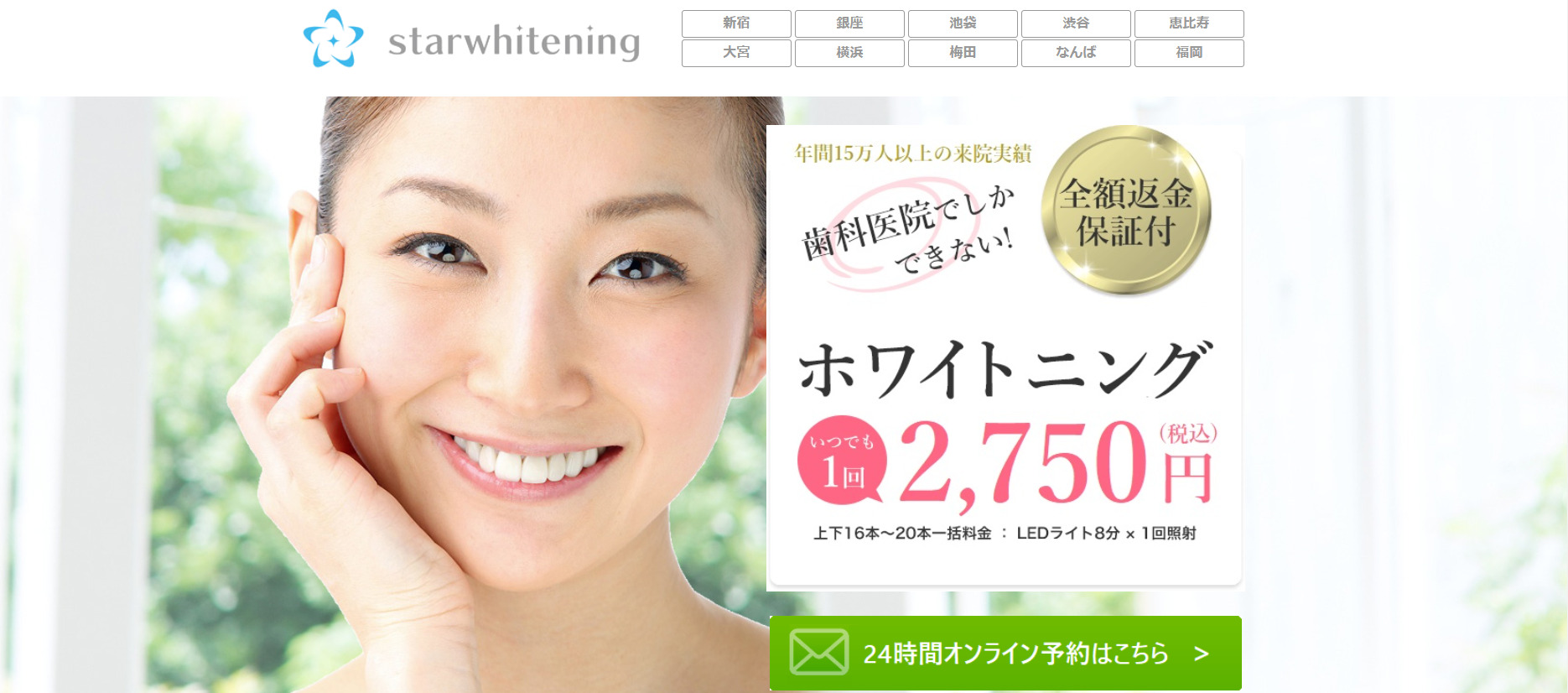 中には「安すぎて逆に心配…」そんな声もあるようですが、スターホワイトニングは歯科医師が常駐している医療機関ですし、年間15万人以上が利用する実績もあります。