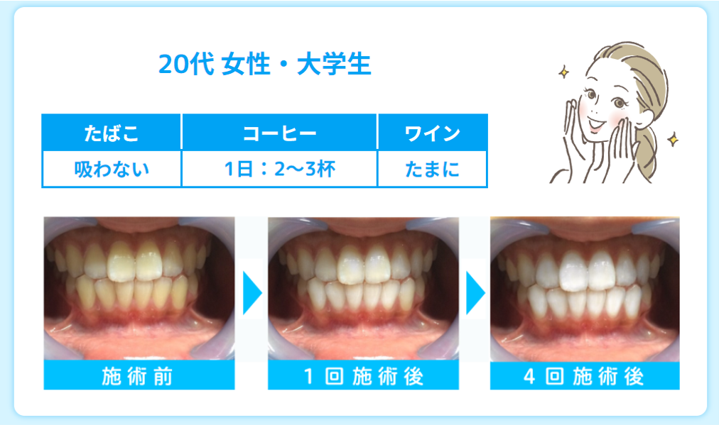 私も過去スターホワイトニングに通っており、わずか4回の施術でここまで歯が白くなりました。