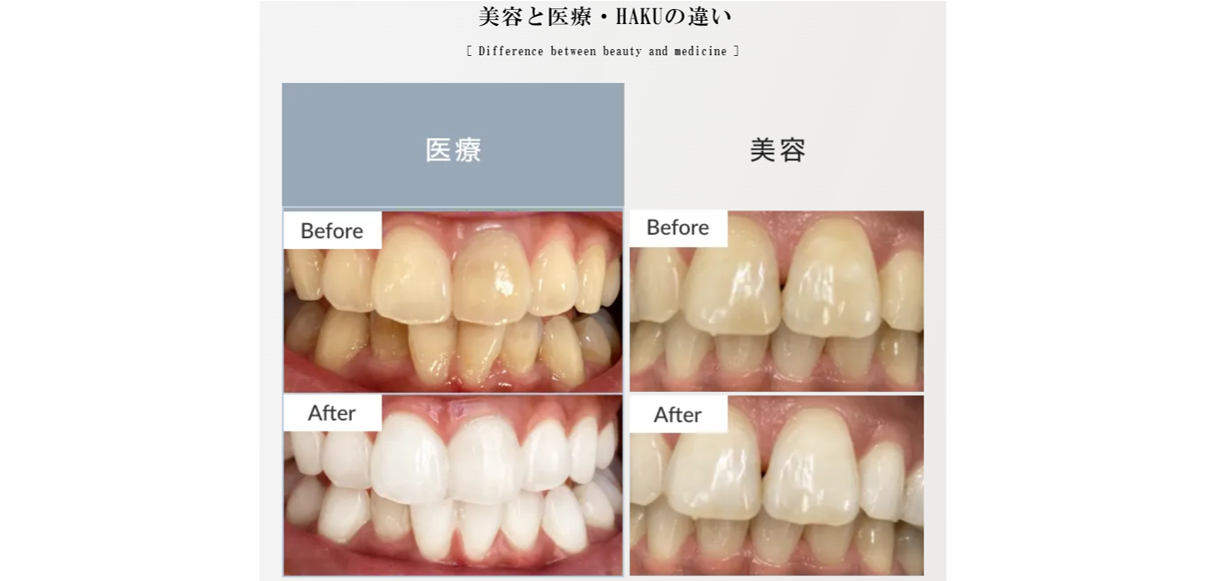 ぶっちゃけ他社のセルフホワイトニングは微妙ですが、HAKUは歯科医師と提携している医療ホワイトニングなので、効果も全然違います。